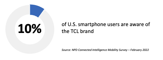 • The TCL Stylus 5G’s aggressive price point should give TCL the boost it has been seeking since entering the US market with its brand (in addition to the licensed Alcatel brand). According to NPD’s Connected Intelligence Mobility survey, TCL’s brand awareness barely passes the 10% mark while less than 2% of U.S. smartphone shoppers consider it for their next phone upgrade.