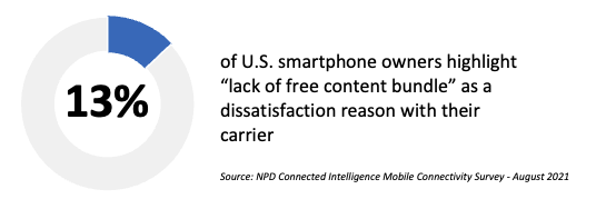 - While network coverage/quality and service price continues to be the top drivers impacting satisfaction (and therefore churn when dissatisfaction rates are high), content bundles and free streaming service subscriptions are gaining in importance as satisfaction drivers. Not having access to free content subscription is the third top dissatisfaction driver (13%) behind high service cost (16%) and low cellular data speeds (also 16%).