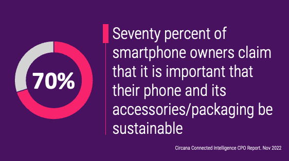 - Apple is serious about sustainability: When Apple decided to remove the charger brick and the wired earbuds from the box starting with the iPhone 12 series three years ago, its sustainability intensions were somewhat undermined by critics pointing out the significant cost savings the company would enjoy through the carbon emission campaign. It is true that Apple has cut back on costs noticeably as the omission of the charger brick meant smaller packaging which meant serious logistics cost savings, but yesterday’s event demonstrated how committed Apple is in hitting its zero-carbon footprint goal of 2030. The new iPhone 15 series models feature more recycled components than any other iPhone built to-date, and this messaging perfectly feeds into the growing consumer sentiment around sustainability. According to Connected Intelligence’s Certified Pre-Owned Smartphone survey, 70% of smartphone owners claim that it is important that their phone and its accessories/packaging be sustainable (e.g., eco-friendly, carbon neutral) and do not harm the environment and the planet.