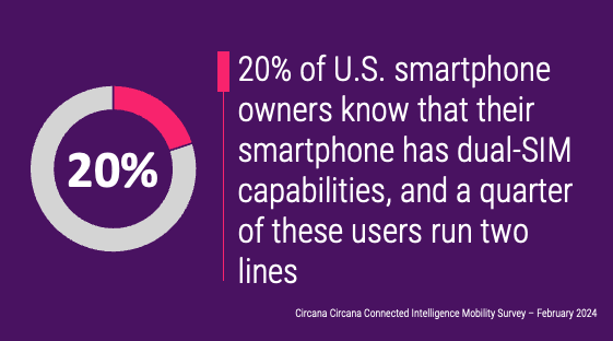 - The debut timing of the Second Number plan is ideal as the dual-SIM concept gradually grows in popularity among U.S. smartphone owners. According to the latest Circana Connected Intelligence Mobility Survey, 20% of U.S. smartphone owners are genuinely aware of the fact that their phone supports dual-SIMs, and a quarter of these users already have to active lines running on their smartphones.