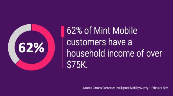 - T-Mobile’s execution with this promotion is on point, as Mint Mobile isn’t a typical prepaid brand catering exclusively to low-income groups. According to Circana’s Mobile Consumer Tracking database, Mint Mobile customers tend to be more affluent, with higher incomes and education levels than the average prepaid customer. This gives T-Mobile a real opportunity to attract value-conscious users from AT&T and Verizon, bolstered by Mint’s innovative marketing campaigns featuring Ryan Reynolds.