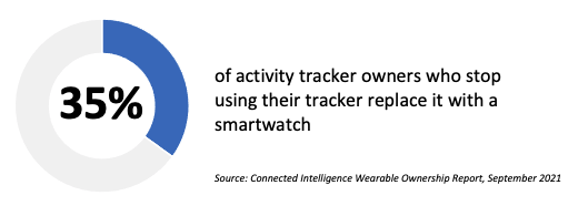 - The activity tracker market is losing its momentum. We are seeing ownership numbers decline as consumers either give up on the product, or switch over to a smartwatch. The trackers that buck this trend will be advanced-sensor products (Amazon fits that category) and elegant, stylish products (not so much).